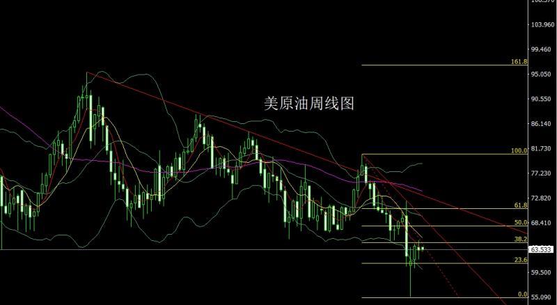 美原油市場上週開盤在64.06的位置後行情先回落給出62.06的位置後行情強勢拉升,週線最高觸及到了65.18的位置後行情強勢回落,週線最低給到了61.81的位置後行情整理,週線最終收線在了61.46的位置後行情以一根下影線稍長於上影線的紡錘形態收線,而這樣的形態收尾後,上週五62.5的多減倉後止損跟進在62.4,今日62.9多止損62.4,目標看63.2和64和65.2,破位看65.6和66.