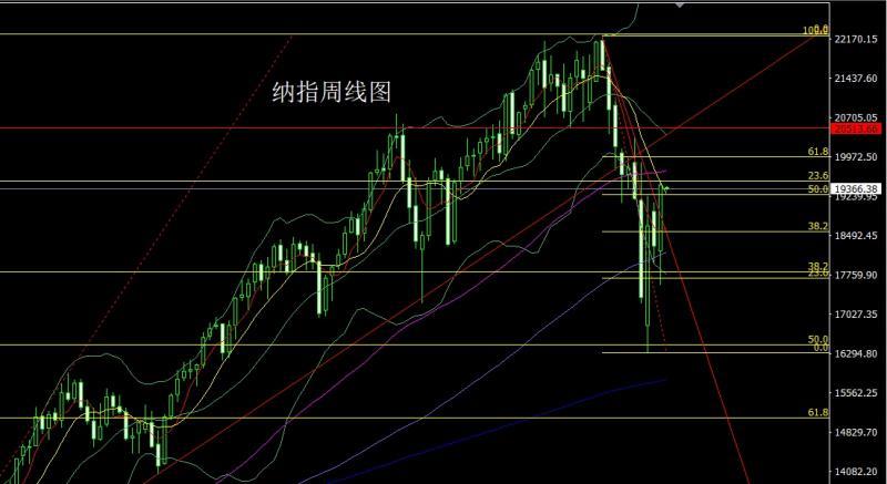 納指市場上週低開在18219.3的位置後行情先回落,週線最低給到了17565.61的位置後行情強勢震盪拉升,週線最高觸及到了19481.58的位置後行情整理,週線最終收線在了19436.5的位置後行情以一根下影線很長的大陽線收線,而這樣的形態收尾後,今日19150多止損19050,目標看19482和19600和19700.