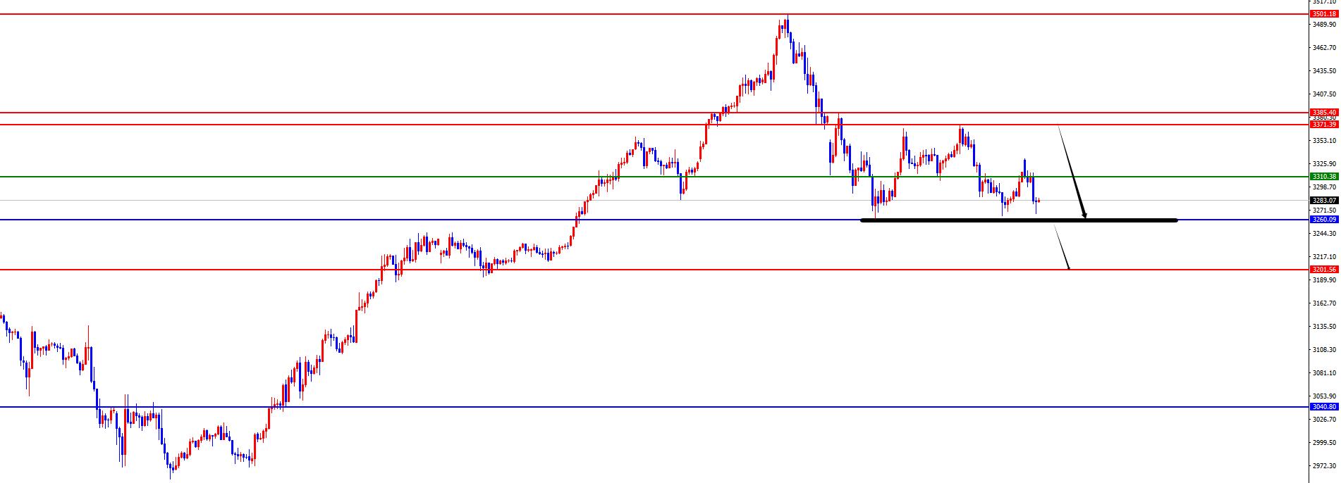 黃金3370-3371區間空,防守3390,目標3260-3200(如若先下破日線支撐3260則後續需要關注延續)