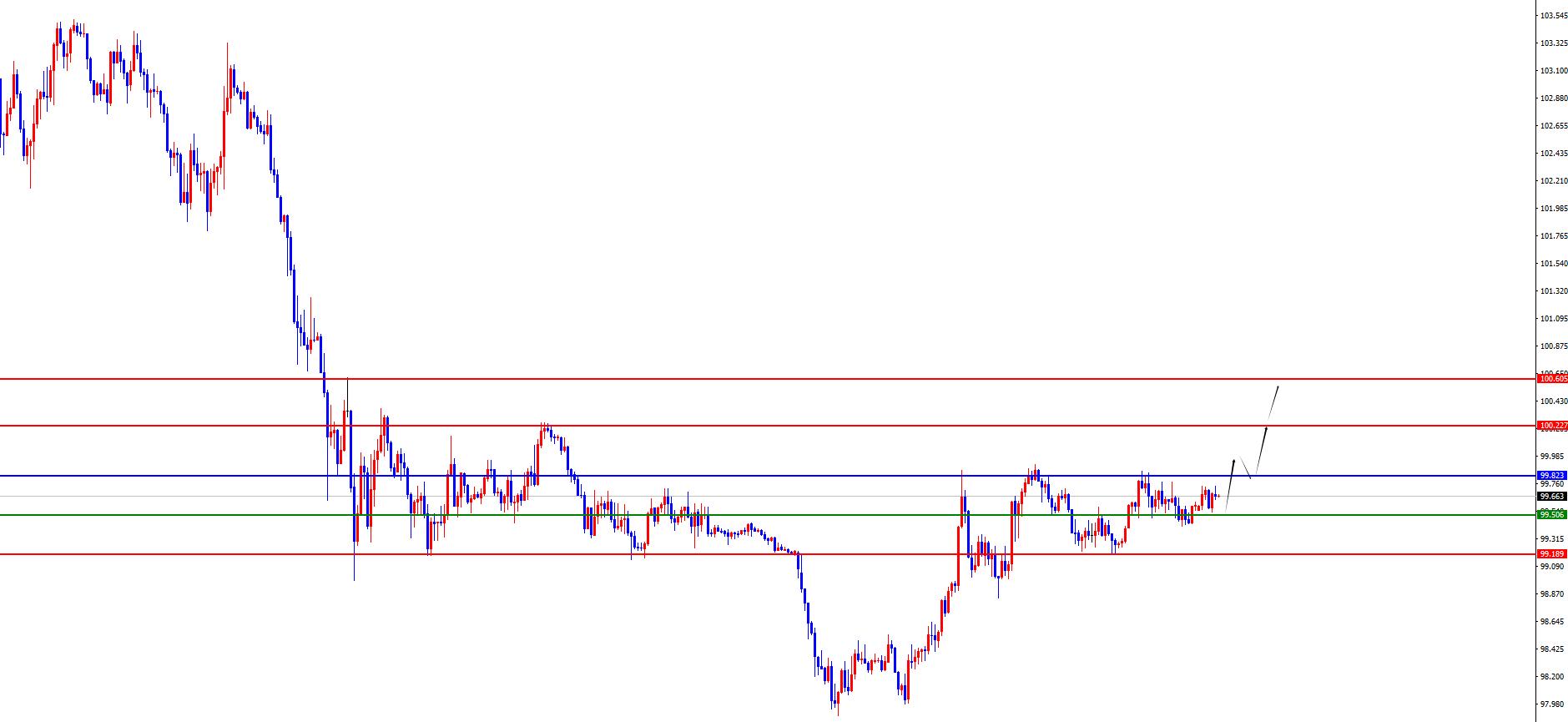 美指99.40-50區間多,防守5美金,目標99.80-100.20-100.60