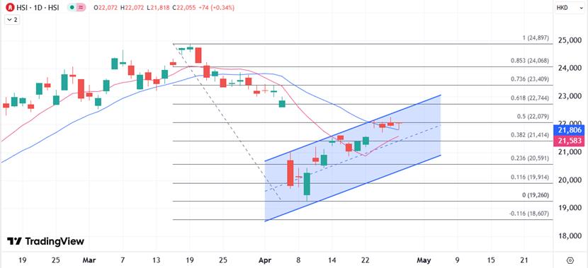 港股在周線連漲後,今日隨著市場觀望最新的貿易談判進展和外圍美國眾多重要經濟數據,恆指暫時維持22000關口上方的交投,繼續守住日圖主要均線上方為多頭堅守月初以來的高位的關鍵,但是呈現高位的整理,需要關註一旦有利空消息很容易讓恆指再次失勢,尤其是在接近近期上行通道頂部的情況下。