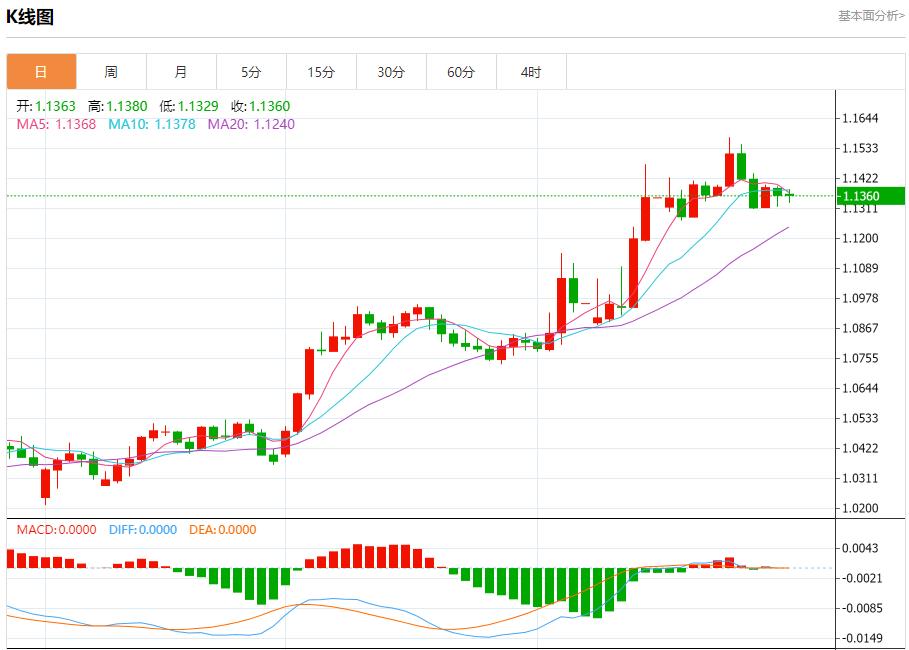 歐元/美元:截止北京時間20:20,歐元/美元上漲,現報1.1360,漲幅0.00%。紐市盤前,歐元兌美元在達到超買水平後,在熊市修正波的主導下,在EMA50下方持續交易,此外(RSI)上開始出現負面信號,盤中水平下降。