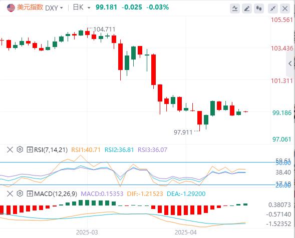 4月30日,北京時間週三亞市早盤,美元指數徘徊在99.18附近。週二,在美國貿易協議希望的支撐下,美元指數震盪走高,重回99關口上方,最終收漲0.28%,報99.21。美債收益率在美國經濟數據表現不佳後急挫,基準的10年期美債收益率收報4.181%;對貨幣政策更敏感的兩年期美債收益率收報3.656%。隨著避險情緒有所降溫,現貨黃金回調,盤中一度失守3300美元大關,最終收跌0.81%,報3317.25美元/盎司。現貨白銀先漲後跌,美盤回吐日內全部漲幅,最終收跌0.69%,報32.93美元/盎司。由於美國經濟數據顯現出的壓力跡像打擊了需求前景,國際原油大跌。 WTI原油跌跌不休,接連下破61、60兩道關口,最終收跌2.84%,報59.93美元/桶,創近三週新低;布倫特原油收跌2.48%,報63美元/桶。