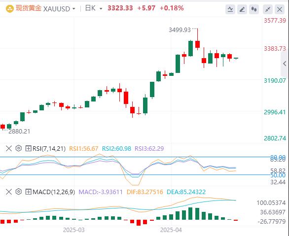 週三亞盤,黃金交投3323.23附近。由於貿易緊張局勢緩解以及全球市場風險情緒改善,該貴金屬小幅走低。交易者將關注美國ADP就業人數變化、個人消費支出物價指數(PCE)和初步第一季度國內生產總值(GDP)報告,這些數據將在周三晚些時候公佈。