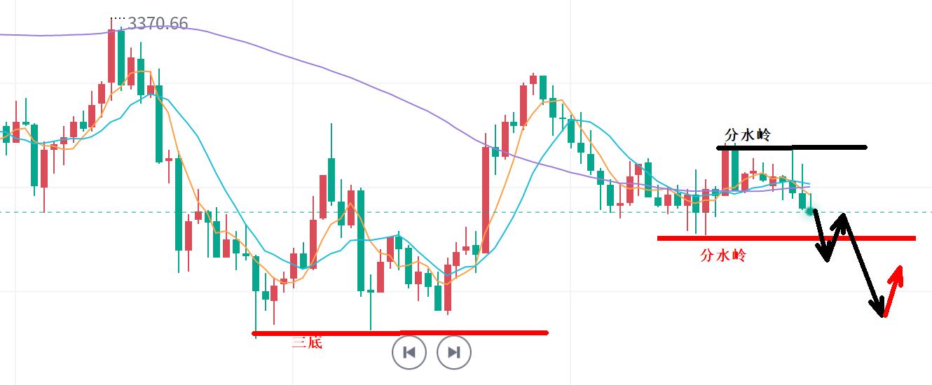 1,激進依然是先卡歐盤回撤,破分水嶺損,上方阻力位3316-7一線。