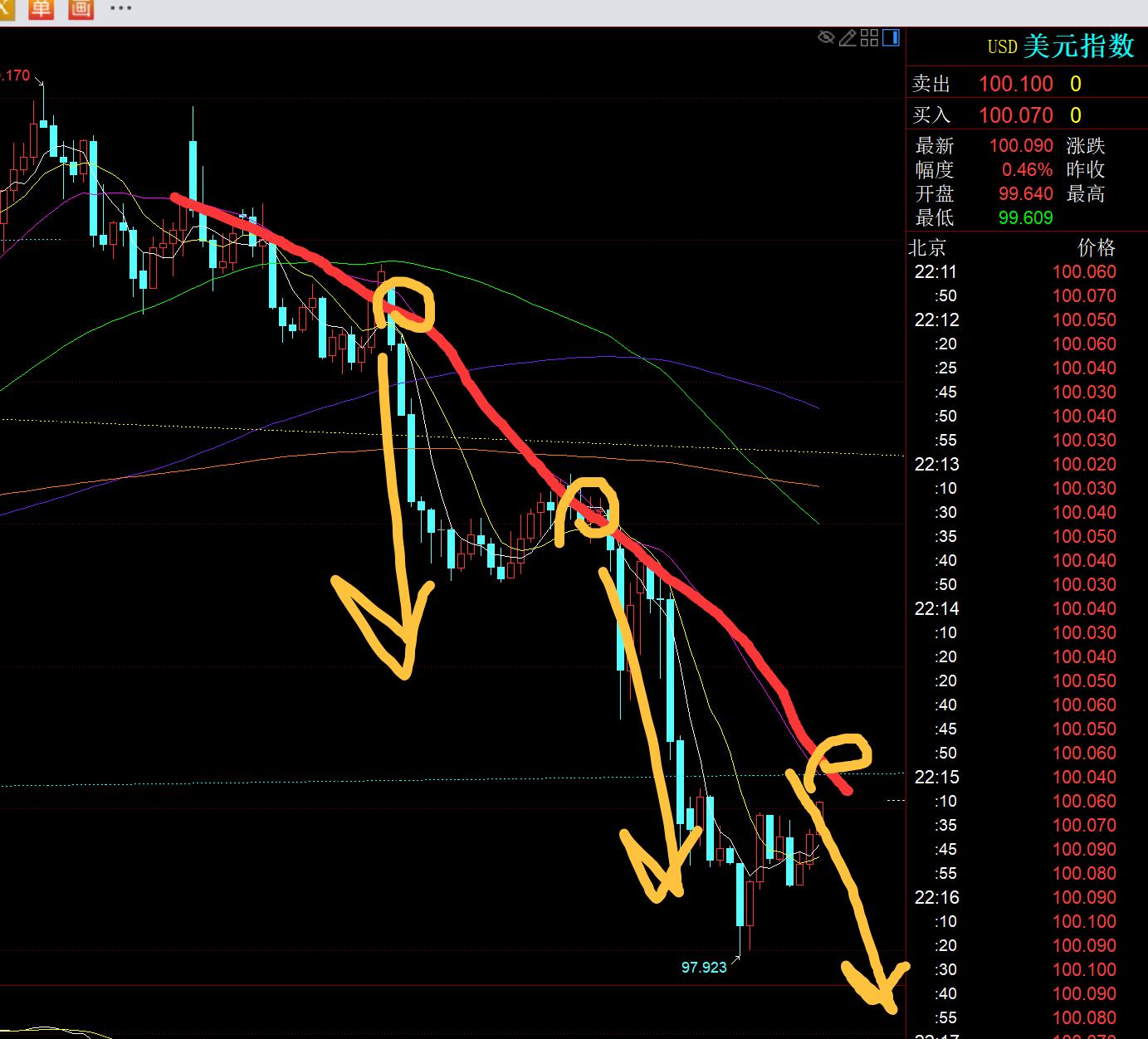 由於美元指出已經快逼近日線關鍵中軌,已經不遠了,也就這兩天它有望即將結束反彈修正,繼續開啟弱勢趨勢下跌,因此這兩天黃金也隨時會出短期底部; 黃金周線5均線支撐試探了,日線中軌也刺破了,都算完成了任務指標,接下來就是等待什麼時候來一波反拉,至少3260-3270這個前期收斂三角的底部低點會去試探確認,時間問題;而試探完畢後,若承壓站不上,那麼還可能有二次探底,出一個次低點或雙底,然後再最終啟動一路單邊拉升; 當然,若3200不是今夜的低點,日線收線下影線較短,那麼可能還要試探下最後一個3175位置再去定短期底部;