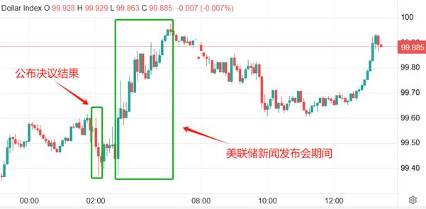 鮑威爾的發言盡顯鷹派,打消了市場的一部分疑慮,利多美元指數。五分鐘界別看,2:00至2:10,美元指數從開盤價99.56急跌至99.36,意味著暫停降息的預期已被充分消化;2:30~4:15,也就是鮑威爾講話期間和之後的一段時間,美元指數從開盤價99.43飆漲至99.97點,逼近100整數關口。美指的上漲,證明鮑威爾的鷹派發言顯著提振了市場信心。