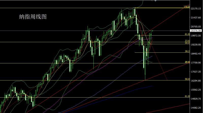 納指市場上週開盤在20092.45的位置後行情先回落,週線最低給到了19579.32的位置後行情強勢拉升,週線最高觸及到了20249.41的位置後行情整理,週線最終收線在了20050.19的位置後行情以一根下影線極長的啟明星形態收線,而這樣的形態收尾後,在美國和中國貿易談判緩和的背景下高開,今日20150多止損20050,目標看20450和20550*20600.