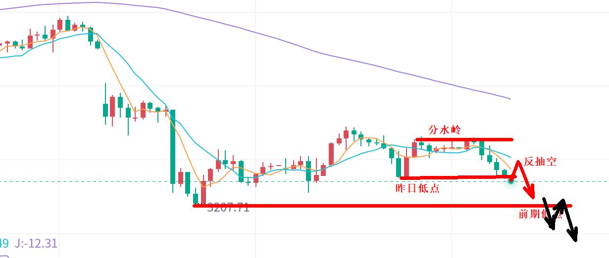 3,位置方面,這種連跌形態,參考5分鐘裡面的續跌位或者小時線轉陽反抽即可空。第一阻力位3232-33一線。