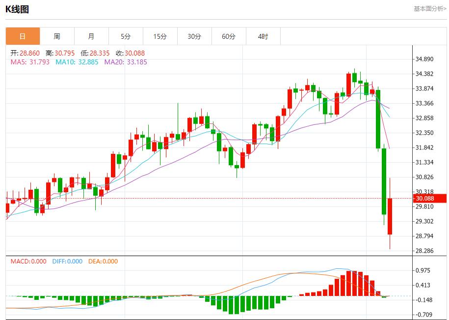 現貨白銀:截止北京時間20:18,現貨白銀上漲,現報30.015,漲幅1.62%。紐市盤前,白銀價格在日內水平穩定,低於30.85美元的關鍵阻力,加強了看跌的情景,特別是(RSI)已經達到超賣水平。