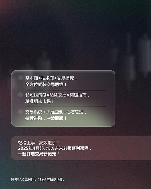 4月起,吉米老師將為交易初學者打造系統化學習路徑,從最基礎的知識入手,逐步培養你的交易能力,助你邁向交易高手之路。