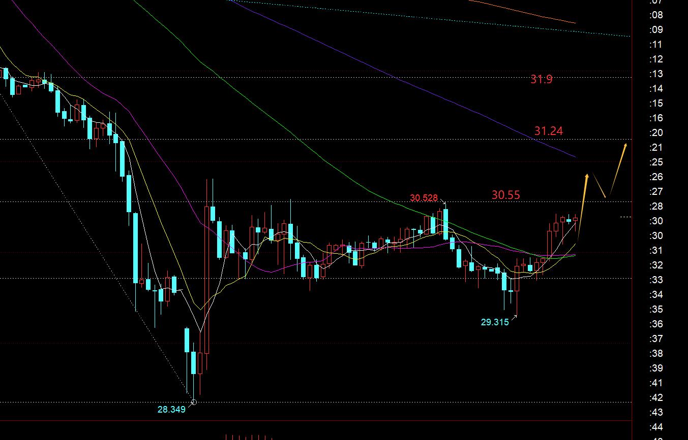 第二,白銀方面:昨日30.05一線也跟隨短線看漲,最高30.5一線,一定利潤拿下;