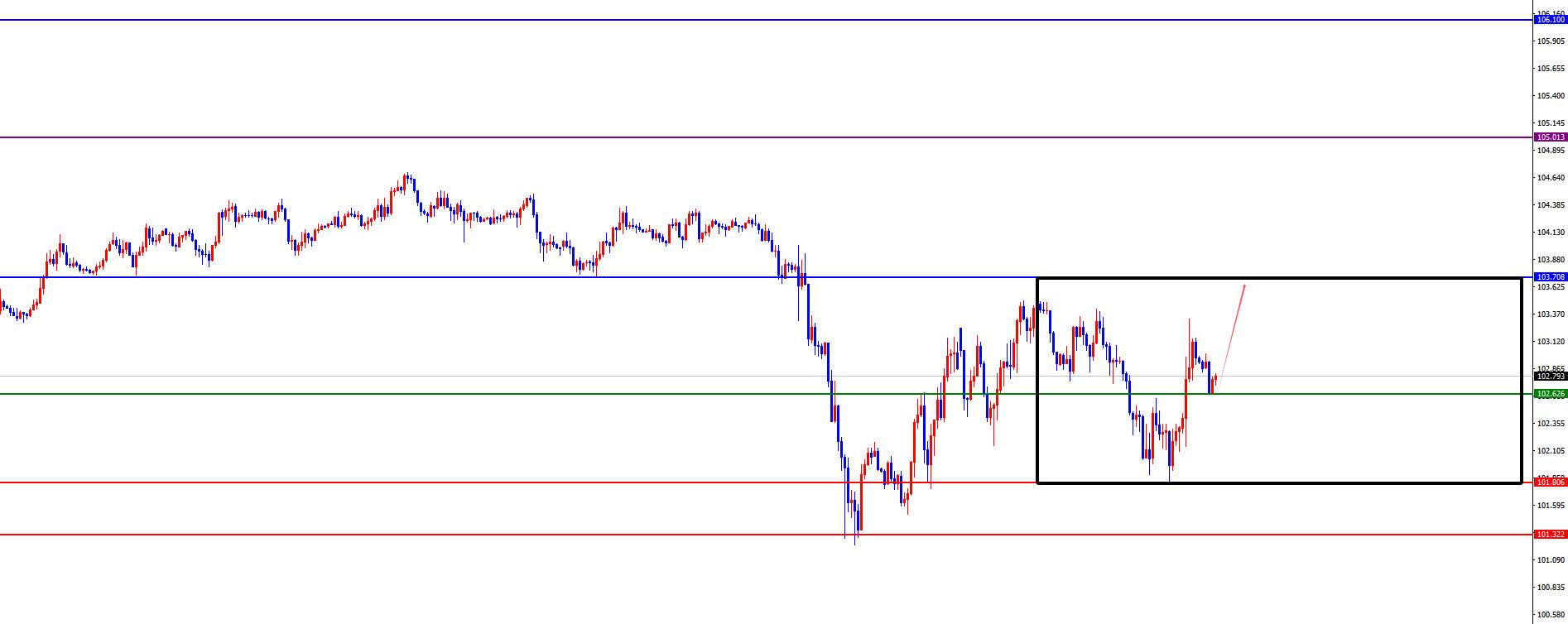 再看日線級別,目前需要重點關注103.60區域的阻力位,這一位置對於判斷美指的波段走勢起著決定性作用。
