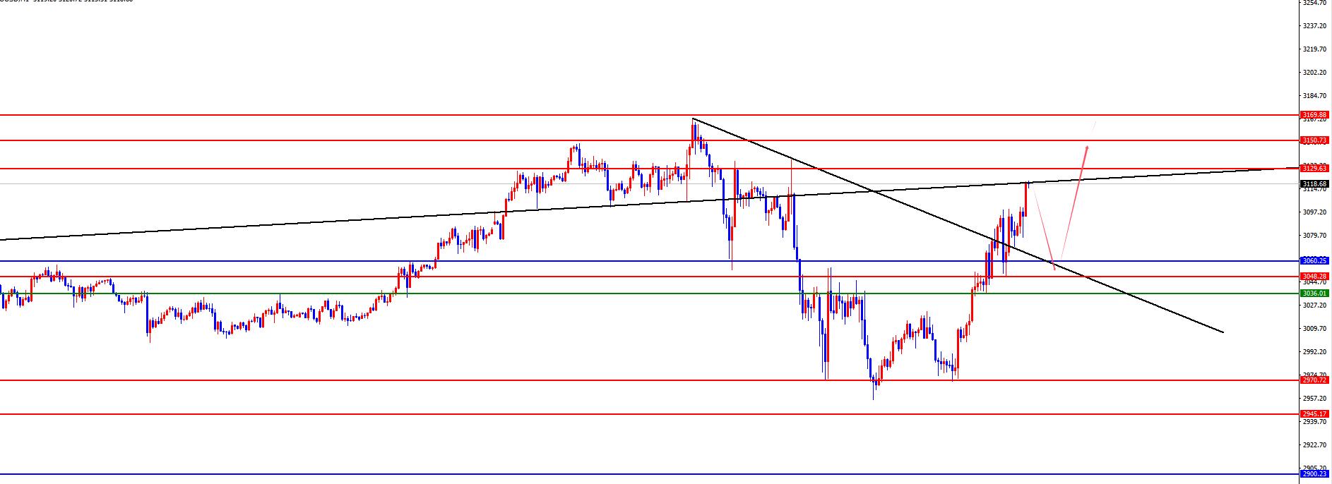 黃金3050區域多,防守3035,目標3130-3150-3170