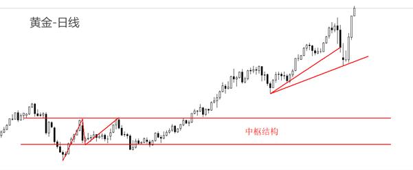 走勢結構角度看,日線級別,黃金早在去年四季度就已經形成了中樞結構,截至目前,都沒有新的中樞結構出現,意味著漲勢還將延續下去。經過上週四至本週一的下跌後,黃金的上漲速度有所下調,但不影響多頭趨勢的發展。考慮到美債市場流出的資金規模可能比較龐大,黃金又是避險和保值的首選產品,所以本輪黃金的上漲空間預估會比較大。