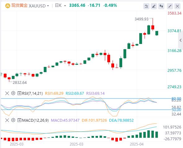 週三亞盤,黃金交投3365.46附近。週三亞市盤中,黃金價格下跌,這與特朗普表示他不打算解僱美聯儲主席杰羅姆·鮑威爾的評論有關。最近,美國總統唐納德·特朗普表示他沒有解僱鮑威爾的意圖。他說:媒體總是誇大其詞。不,我沒有解僱他的意圖。我希望他在降低利率的想法上能更積極一些。