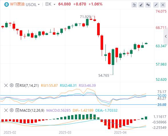 週三亞盤,原油交投64.08附近。隨著美國貨幣政策不確定性加深,經濟衰退機率接近50%,為原油需求亮起了紅燈。伊朗核談判取得進展,緩解了製裁壓力,有可能增加該地區的原油供應。交易員還將關注本週晚些時候幾位美聯儲官員的講話,希望在人們擔憂聯儲獨立性之際從中尋找未來貨幣政策的線索。本交易日還將出爐歐元區和美國4月SPGI製造業PMI初值,投資者也需要予以留意,關注俄烏地緣局勢相關消息。