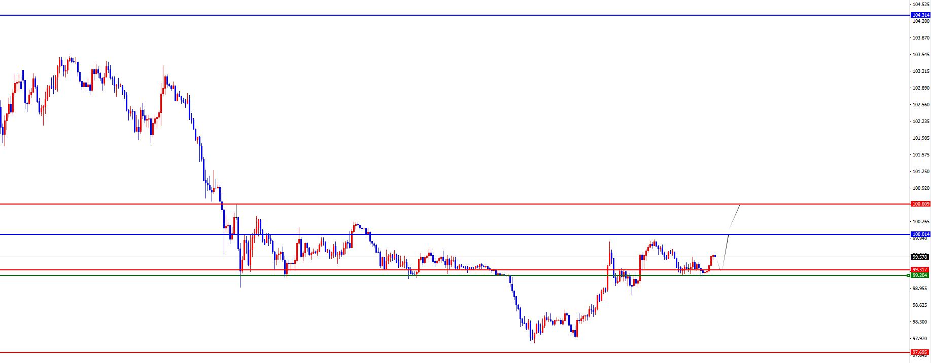 美指99.20-30區間多,防守5美金,目標100-100.60